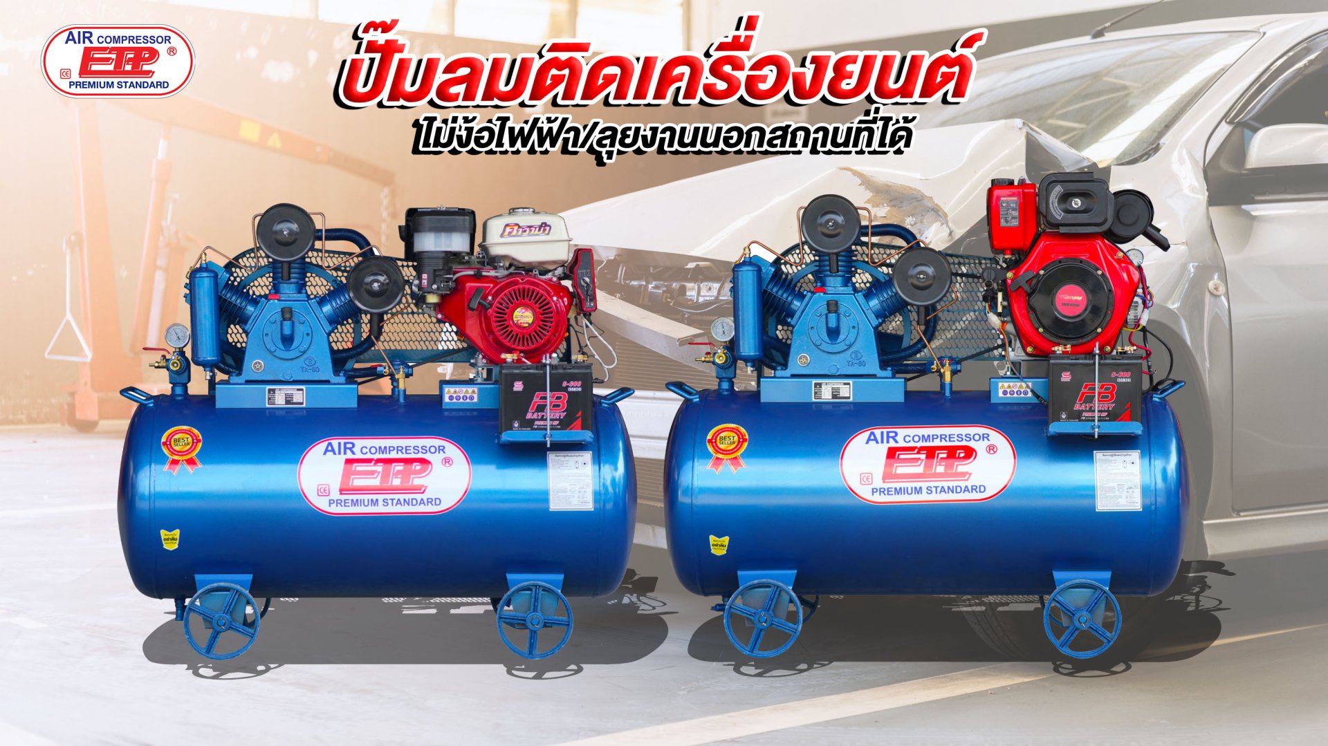 - หัวปั๊ม HTA-80 / 5แรง ทำลมได้เร็ว ทนความร้อนสูง - เครื่องยนต์เบนซิน 13 แรง 4 จังหวะของคาวาม่าผลิตในไทยแท้100% มีซีเรียลนัมเบอร์ ทุกตัว - พร้อมแบตเตอรี่ FB ที่ทนได้ใจ พลังไฟสูง พร้อมจะลุยงานภาคสนามได้ อย่างมีประสิทธิภาพ - ถังหนาได้มาตรฐานงานไทย ขวางกระบะรถยนต์ได้ หายห่วง